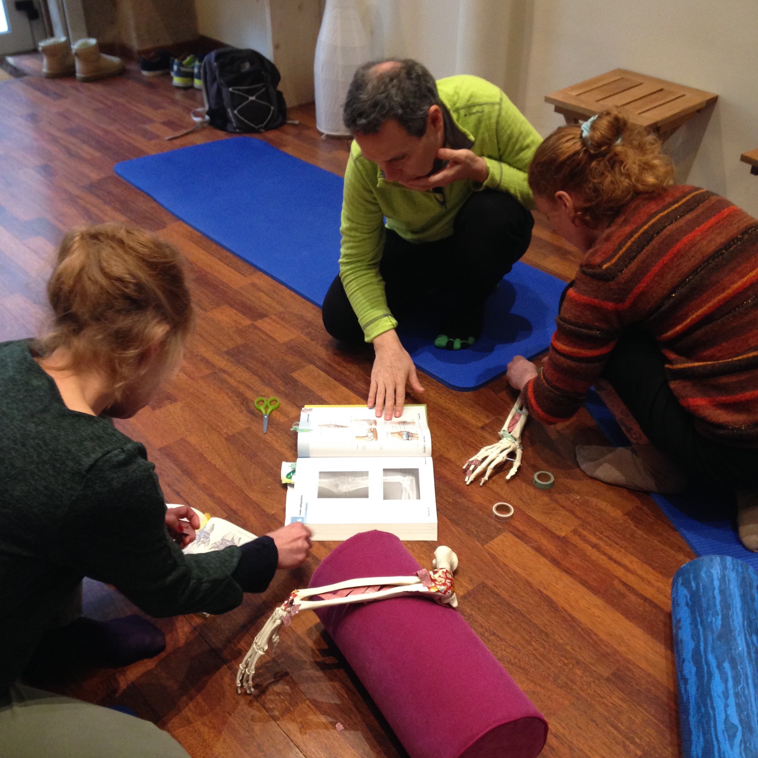 On explore l’anatomie et de la physiologie par le toucher, le mouvement, l’étude de planches anatomiques, le modelage, le dessin, le jeu, la parole, la danse, l’écriture…